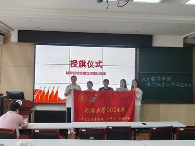 最后,20级辅导员邓颖老师授予校级立项团队暑期社会实践旗帜。至此,出征仪式圆满结束,最后各团队代表合照留念。