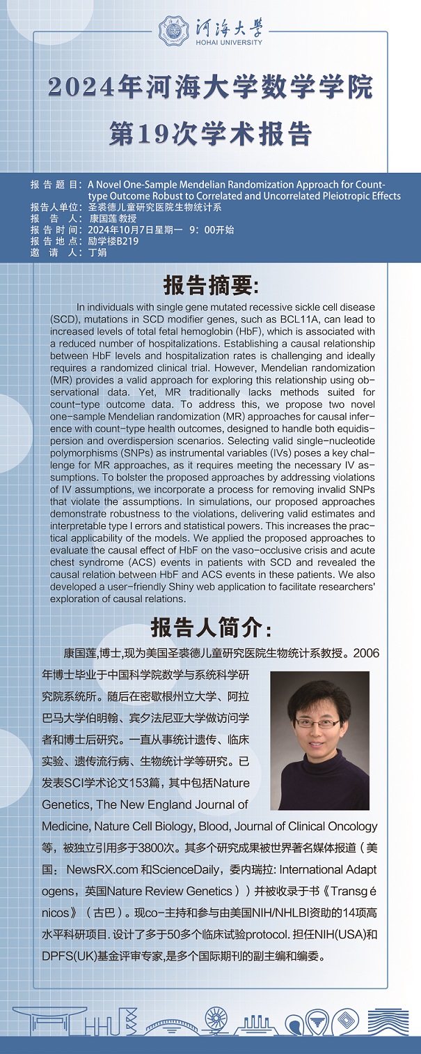 黄色动漫 第19次学术报告:A Novel One-Sample Mendelian Randomization Approach for Count-type Outcome Robust to Correlated and Uncorrelated Pleiotropic Effects
