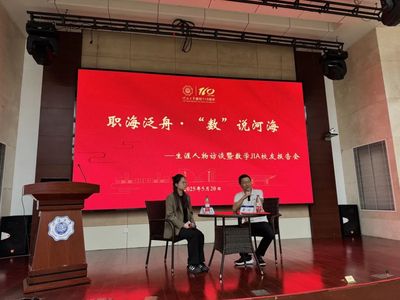 为帮助学生明确职业方向,提升生涯规划意识,5月20日,我院举办了“职海泛舟,‘数’说未来”——生涯人物访谈暨“数学JIA”校友报告会,活动邀请义乌市IP产业协会常务副会长、杭州羽克电子商务有限公司董事长李仕校友分享创业经验和生涯故事,学院党委书记潘静、叶国菊教授、学生代表70余位出席报告会,会议由院团委书记张添烨主持.