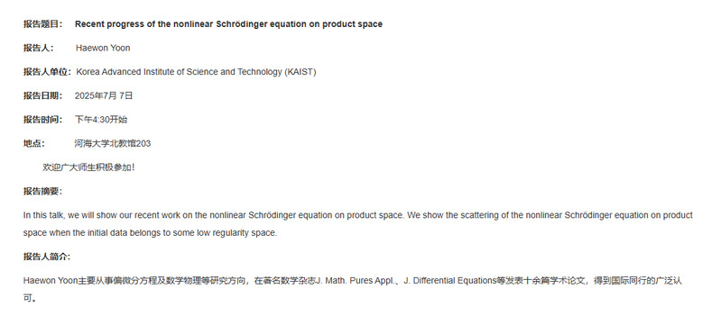 黄色动漫 第16次学术报告:Recent progress of the nonlinear Schrödinger equation on product space